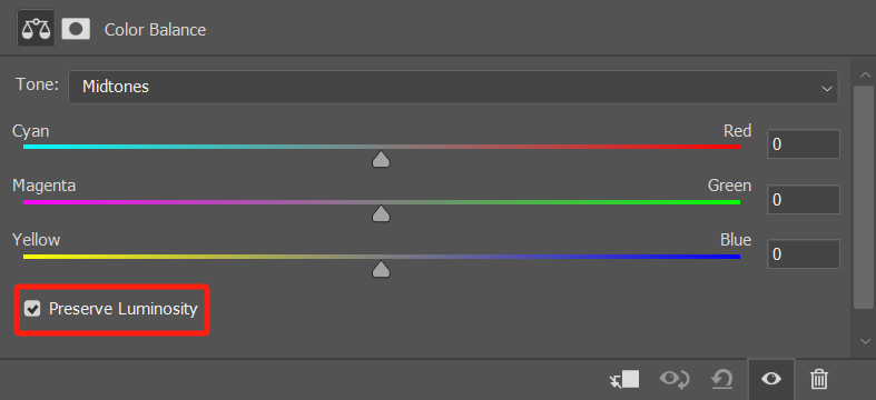 In the bottom left corner of the Color Balance dialog box, there is a checkbox labeled "Preserve Luminosity," which is selected by default. We recommend keeping this option selected.