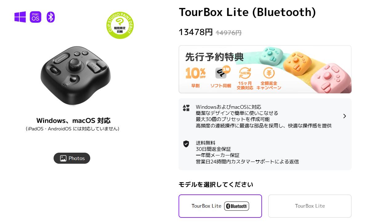 TourBox Lite Bluetooth オアシスシリーズ予約ページ